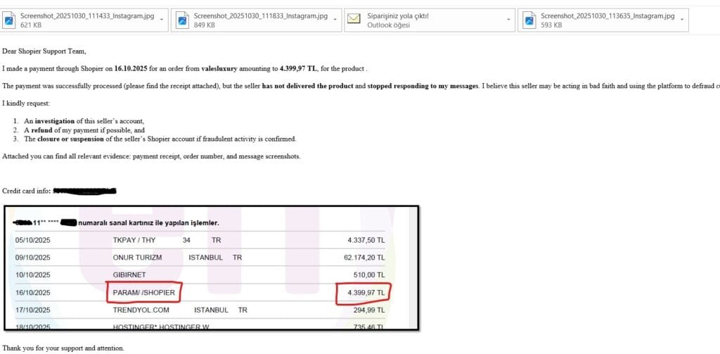 Bu mailde ben ek olarak instagramda iletişim kurduktan sonra dönüş yapmadıkları mesajları da ekledim. Shopier mesajlarıma dönüş olmadığını da görmüş olsun ki süreç belki yavaşlarsa faydalı olur gibi düşündüm. Ama muhtemelen mağdur olan çok ve gerçekten hızlı ve çözüm olacak şekilde maillerime dönüldü. Bu nedenle shopier hakkında son derece güvenilir bir platform diyebilirim.